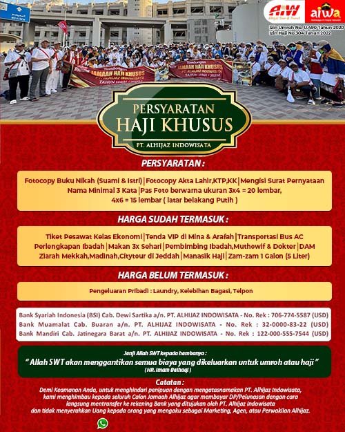Alhijaz sudah diberi wewenang khusus Kemenag untuk memberikan layanan mulai dari pendaftaran hingga mengatur penyelenggaraan ibadah haji di tanah suci hingga kepulangan