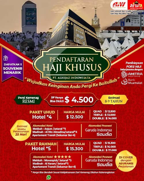 Kami Memiliki lisensi ijin PIHK (Penyelenggara Ibadah Haji Khusus) SK No.304 thn 2022